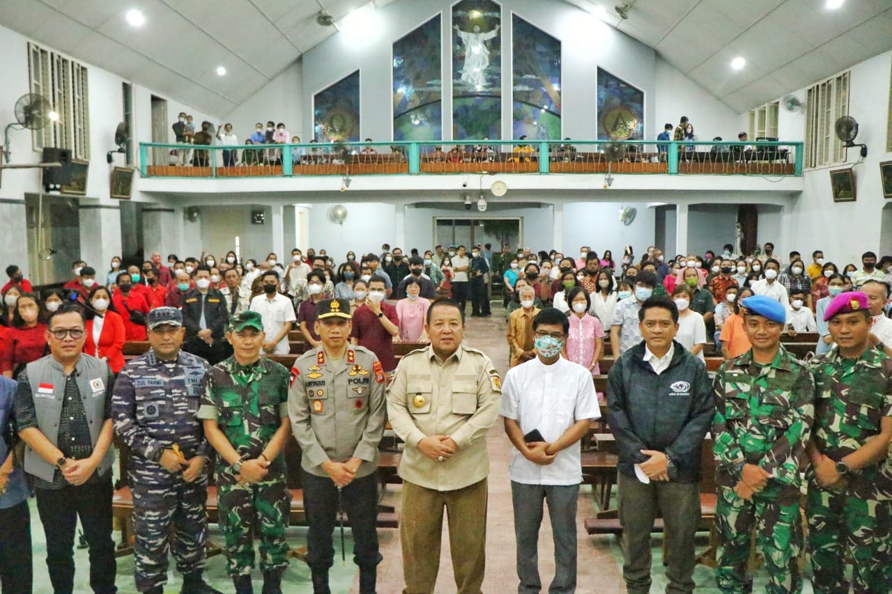 PAMUNGKAS INDONESIA.ID, LAMPUNG – Gubernur Lampung Arinal Djunaidi bersama Forkopimda monitoring pengamanan misa Natal, dengan melakukan peninjauan tiga Gereja dan pos pengamanan Natal Tahun 2022 di wilayah Bandar Lampung, Sabtu malam (24/12/2022).