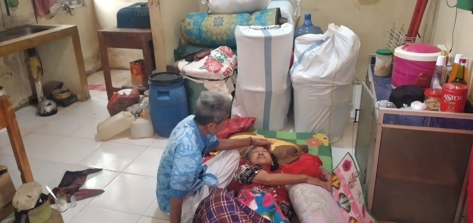 Ropi’i menuturkan jika sekarang sang isteri jatuh sakit tidak bisa berdiri karena gejala struk dengan kondisi lumpuh total, sok karena akan di usir.