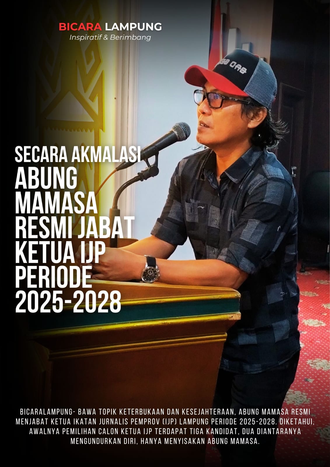 Lampung, pamungkasindonesia.id –  Abung Mamasa resmi menjabat Ketua Ikatan Jurnalis Pemprov (IJP) Lampung Periode 2025-2028.