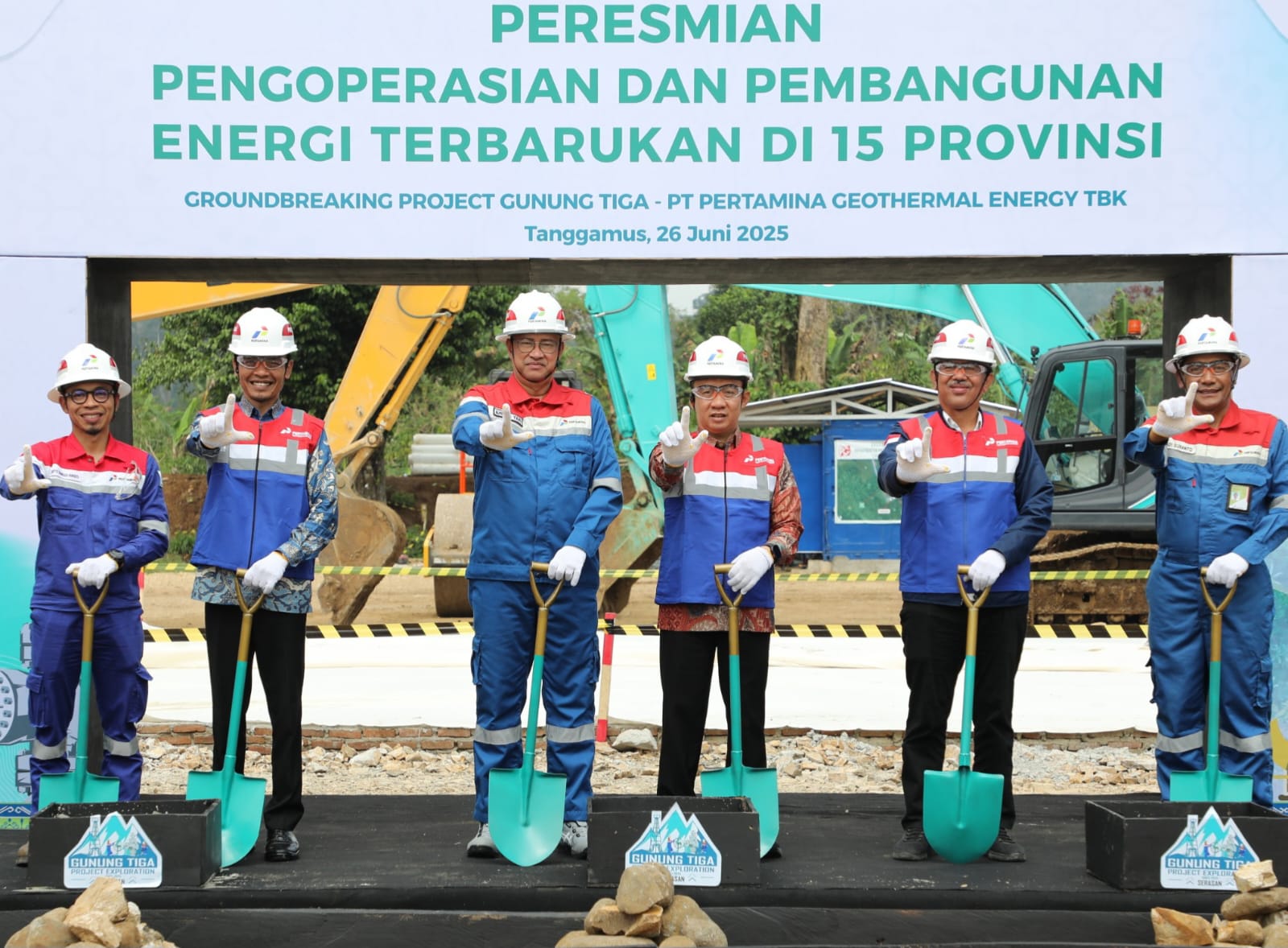 Direktur Jenderal Energi Baru Terbarukan dan Konservasi Energi (EBTKE) Kementerian ESDM, Bambang Purbiyantoro, turut hadir dan menyampaikan bahwa proyek Gunung Tiga merupakan bagian dari Wilayah Kerja Panas Bumi (WKP) Gunung Way Panas, yang berada dekat dengan lapangan Ulubelu yang sudah beroperasi dengan kapasitas total 220 MW.