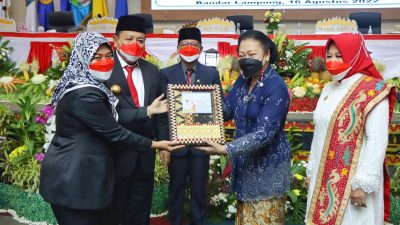 “Piagam Penghargaan tersebut diserahkan secara langsung oleh Gubernur Lampung kepada Istri dari mendiang Oemarsono, Edyati Dwi Lestari” PAMUNGKAS…